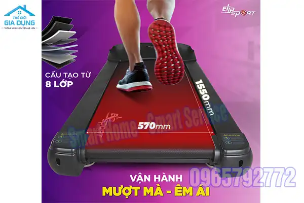 Chất liệu thảmSợi tổng hợp (8 lớp vật liệu), đảm bảo độ bền, chạy êm